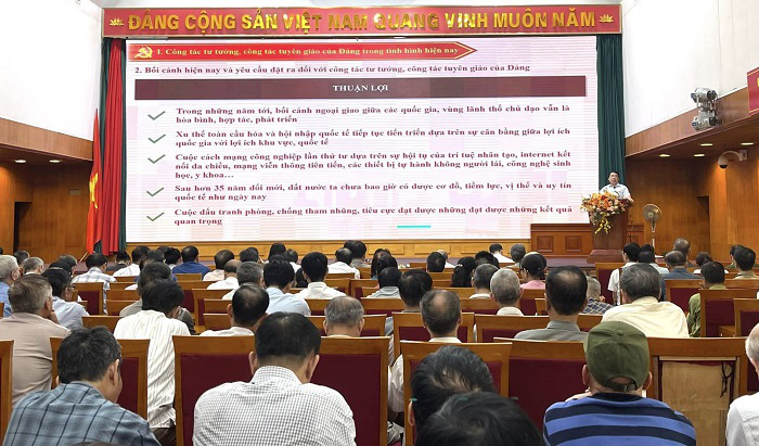 Tại Hội nghị, các đại biểu đã được nghe đồng chí Đào Xuân Dũng, Phó trưởng Ban Tuyên giáo Thành ủy Hà Nội cung cấp một số kết quả nổi bật, những thuận lợi và khó khăn trong việc thực hiện công tác tuyên giáo của Đảng trong tình hình hiện nay, những vấn đề đặt ra và định hướng công tác tư tưởng trong tình hình mới. Đồng thời, đồng chí cũng truyền đạt những nội dung cốt lõi, gồm: mục tiêu, 8 nhiệm vụ, giải pháp trọng tâm được cụ thể hoá tại Nghị quyết 09-NQ/TU phát triển công nghiệp văn hoá trên địa bàn Thủ đô giai đoạn 2020-2025, định hướng đến năm 2030, tầm nhìn đến năm 2045. Đồng chí nhấn mạnh: Thành phố Hà Nội là địa phương đầu tiên trong cả nước ban hành một nghị quyết chuyên đề về phát triển công nghiệp văn hóa. Nghị quyết này có ý nghĩa, khẳng định tầm quan trọng của ngành công nghiệp văn hoá đối với sự phát triển bền vững của Thủ đô trong giai đoạn tới, góp phần phát huy tối đa nguồn lực văn hóa, con người, tạo nên sức mạnh nội sinh, động lực quan trọng quyết định phát triển bền vững Thủ đô.