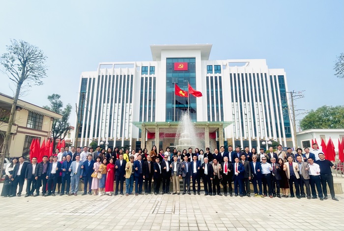 Các đại biểu chụp ảnh lưu niệm tại Trụ sở Huyện ủy Thanh Trì